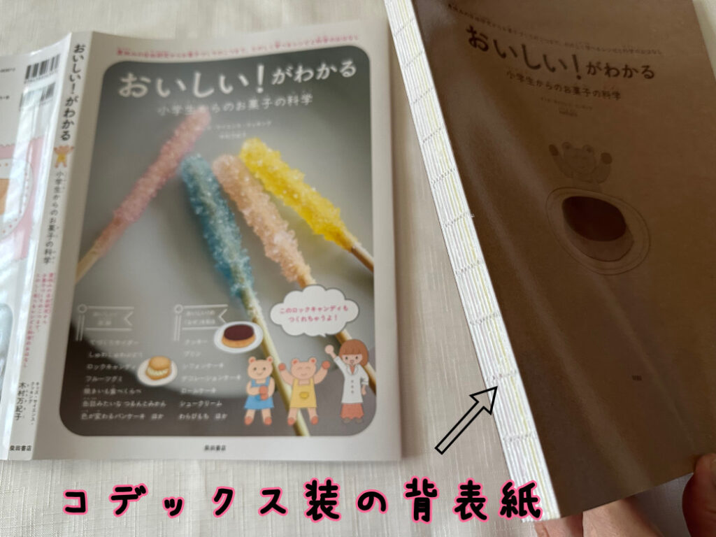 コデックス装は、製本方法の特徴として、背表紙がつかないんです。